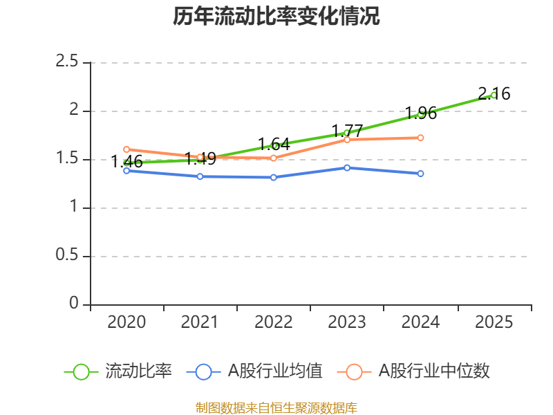 2025年,公司流动比率为2.16,速动比率为0.76。