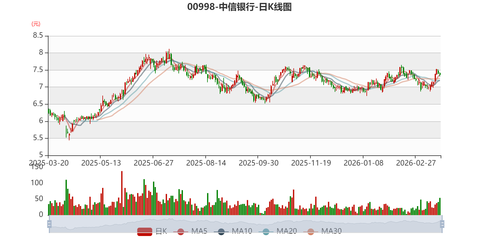 以3月20日收盘价计算,中信银行目前市盈率(TTM)约5.25倍,市净率(TTM)约0.51倍,市销率(TTM)约1.74倍。
