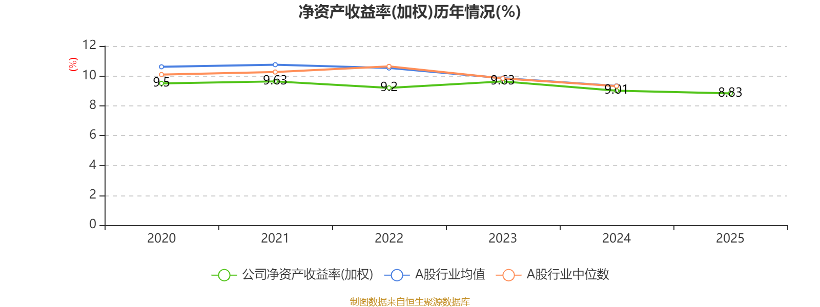 数据显示,2025年公司平均净资产收益率为8.83%,较上年同期下降0.18个百分点。