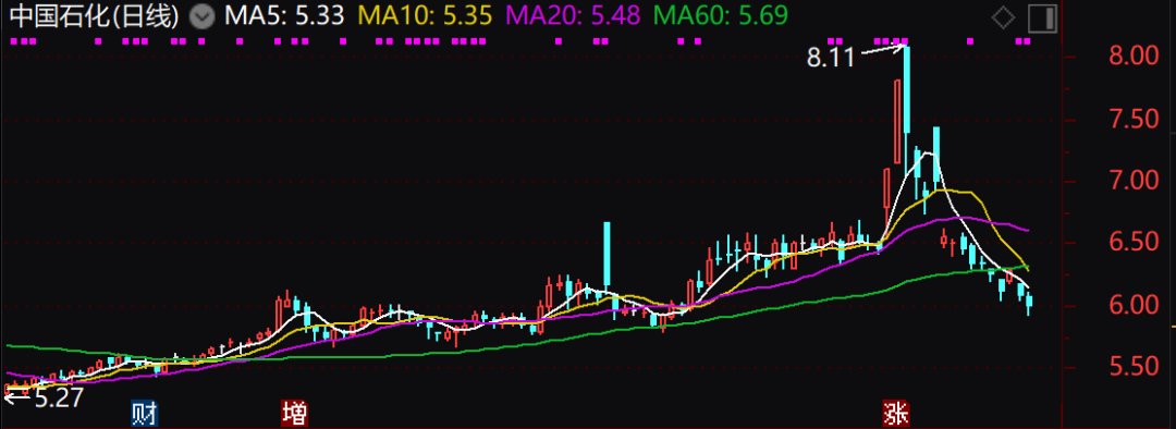 3月23日,中国石化(600028)A股价格走低,至下午2点多,股价跌破6元/股,较3月4日的高位8.11元,降幅超2成。
