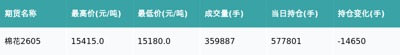 南财智讯3月23日电,盘后期货数据显示,郑州商品交易所的棉花主力合约收涨0.92%,收盘报15280.0元/吨,日内资金流出1.3亿元。其他相关指标见下表: