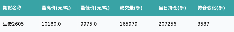 南财智讯3月23日电,盘后期货数据显示,大连商品交易所的生猪主力合约收跌3.53%,收盘报9980.0元/吨,日内资金流出3349.07万元。其他相关指标见下表: