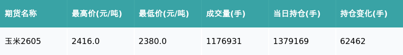 南财智讯3月23日电,盘后期货数据显示,大连商品交易所的玉米主力合约收涨1.64%,收盘报2415.0元/吨,日内资金流入2.63亿元。其他相关指标见下表: