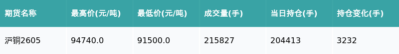 南财智讯3月23日电,盘后期货数据显示,上海期货交易所的沪铜主力合约收跌2.44%,收盘报92100.0元/吨,日内资金流出2.8亿元。其他相关指标见下表: