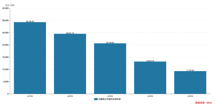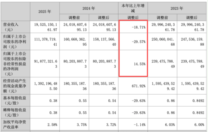 与这场“人祸”并行的,是嘉事堂在行业变局中的步履维艰。2025年年报数据显示,公司实现营业收入195.25亿元,同比下降18.71%;归母净利润1.11亿元,同比下降29.57%。这已是嘉事堂归母净利润连续第四年下滑。