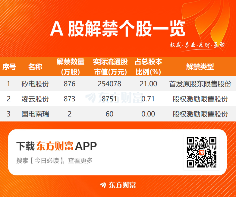 【明日解禁】明日3股解禁 矽电股份、凌云股份解禁市值居前