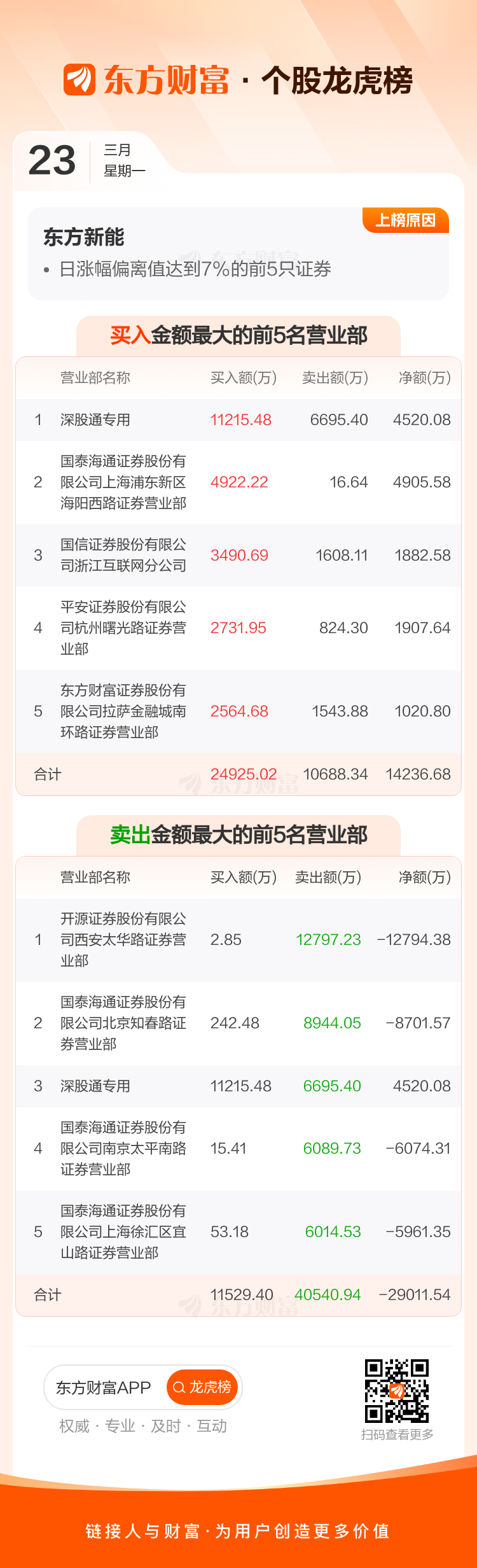 东方新能(002310)龙虎榜数据(03-23)
