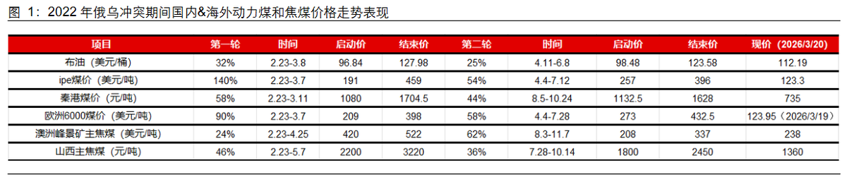 成本支撑全面强化:燃油成本飙升导致全球海运费大涨,印尼重提“出口税”若落地将提高煤炭出口成本,都在推升全球煤炭实际成本。国盛证券认为,本轮煤价上涨总体或分三阶段演绎:阶段一,印尼减产奠定煤价上行基础;阶段二,美伊冲突导致煤代油、煤代气需求激增,强化上行逻辑以及上涨斜率;阶段三,部分煤炭生产国或因柴油紧缺,被动减产/停产,加剧供需矛盾。