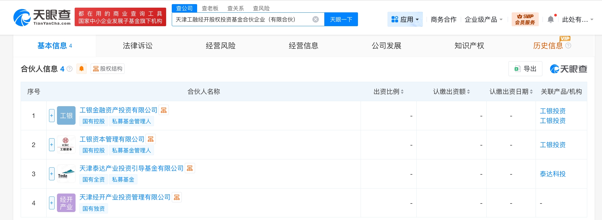 每经AI快讯,天眼查工商信息显示,近日,天津工融经开股权投资基金合伙企业(有限合伙)成立,执行事务合伙人为工银资本管理有限公司,出资额10亿元人民币,经营范围为以私募基金从事股权投资、投资管理、资产管理等活动。合伙人信息显示,该基金由工银金融资产投资有限公司、工银资本管理有限公司、天津泰达产业投资引导基金有限公司、天津经开产业投资管理有限公司共同出资。