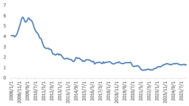 2020年以来,美国以消费从“扩张”转向“高收入驱动、低收入收缩”的“K型分化”,总需求抗风险能力显著下降。经过2022年年初以来多次加息继而降息后,美国联邦利率保持在3.5%~3.75%,但美国CPI仍高于2%的目标水平,这在一定程度上限制了美联储政策持续宽松的空间,进而对居民消费的意愿形成抑制。高物价侵蚀实际收入后,货币的实际购买力降低,即便后期通胀回落,价格绝对水平已永久性上移,居民消费能力难以快速修复。(作者期货投资咨询从业证书编号Z0016628)