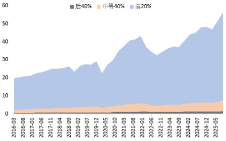 根据美联储数据,自2020年以来,美国收入前20%的群体持有的股票及基金规模扩张速度加快,与其他阶层的人群收入分化更加显著。