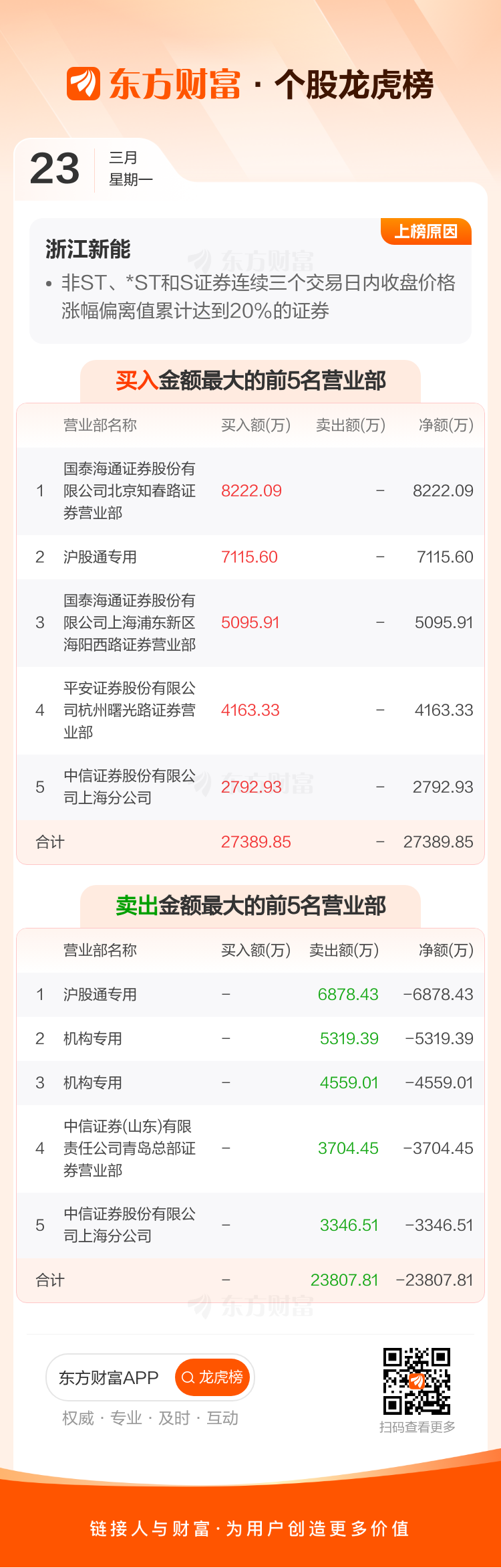 浙江新能(600032)龙虎榜数据(03-23)