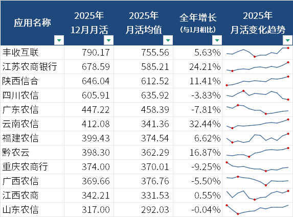 4、农商行:月活增长分化,丰收互联790万位居第一