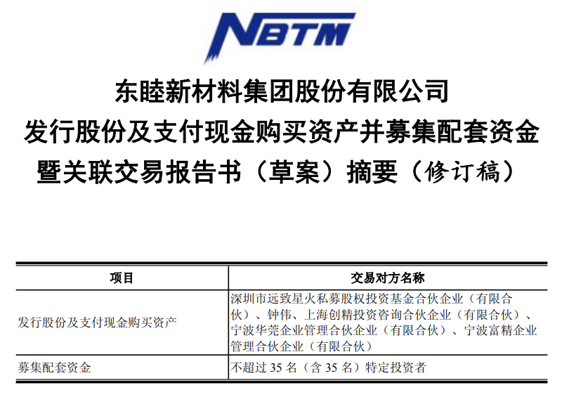 3月23日盘后,东睦股份(600114)发布公告称,公司拟通过发行股份及支付现金的方式购买上海富驰高科技股份有限公司34.75%股权并募集配套资金,目前正处于审核阶段。