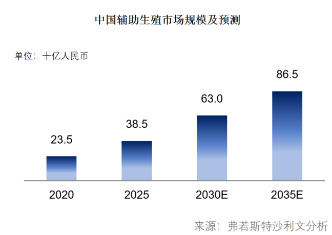 这份《2026年中国辅助生殖行业发展现状及未来趋势白皮书》(下称“报告”)提出,在高龄不孕比例上升及治疗渗透率提升驱动下,中国辅助生殖市场处于需求释放阶段,预计市场规模将由2020年的235亿元增长至2030年的630亿元。之后,市场逐步进入稳态发展阶段,2035年预计将增长至865亿元。