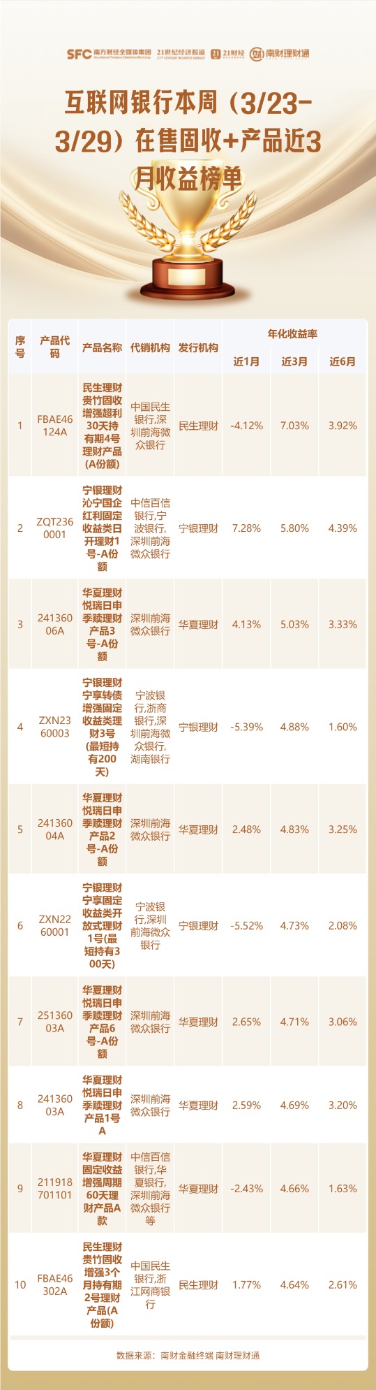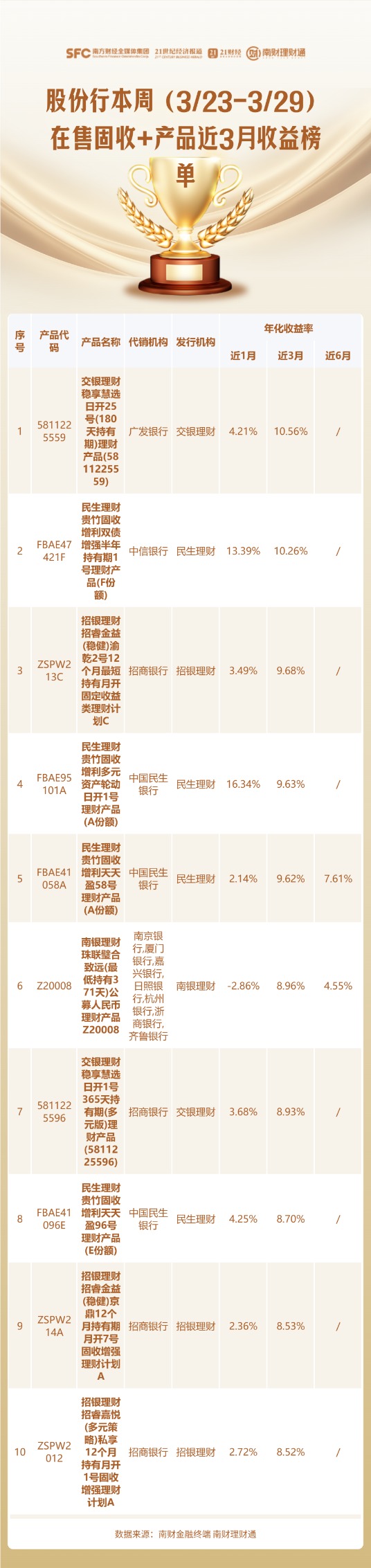 此外,南财理财通虽力求客观公正,但不对本评价榜信息的真实性、完整性和准确性作任何保证,排名信息仅供参考。