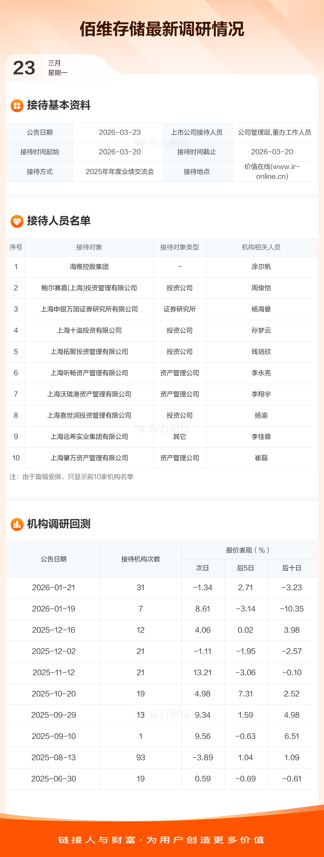 佰维存储3月23日公告称,3月20日接待海雅控股集团等162家机构调研。接待人员包括公司管理层,董办工作人员。