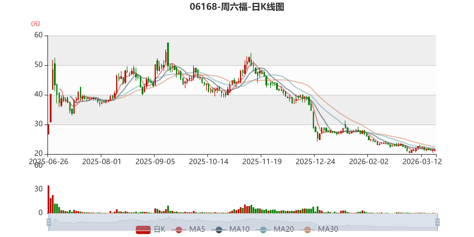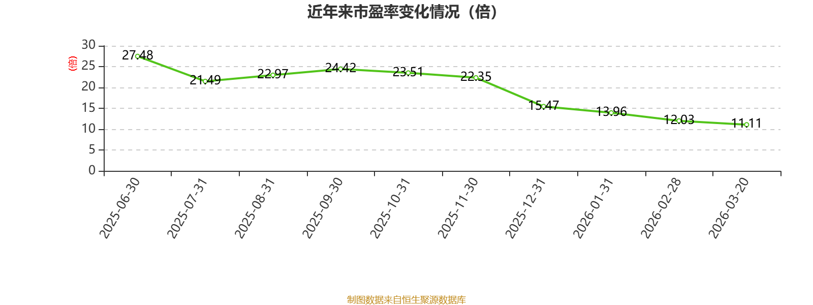 以3月20日收盘价计算,周六福目前市盈率(TTM)约11.11倍,市净率(TTM)约2.01倍,市销率(TTM)约1.47倍。
