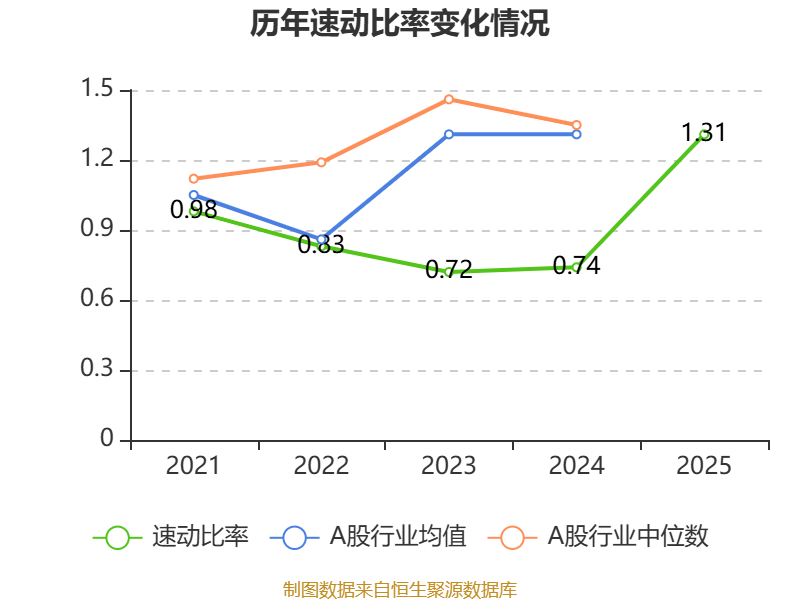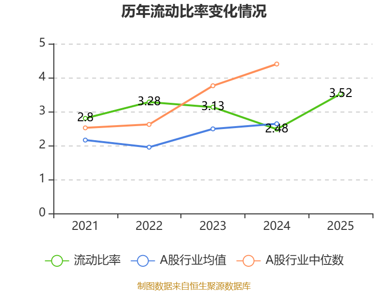 2025年,公司流动比率为3.52,速动比率为1.31。