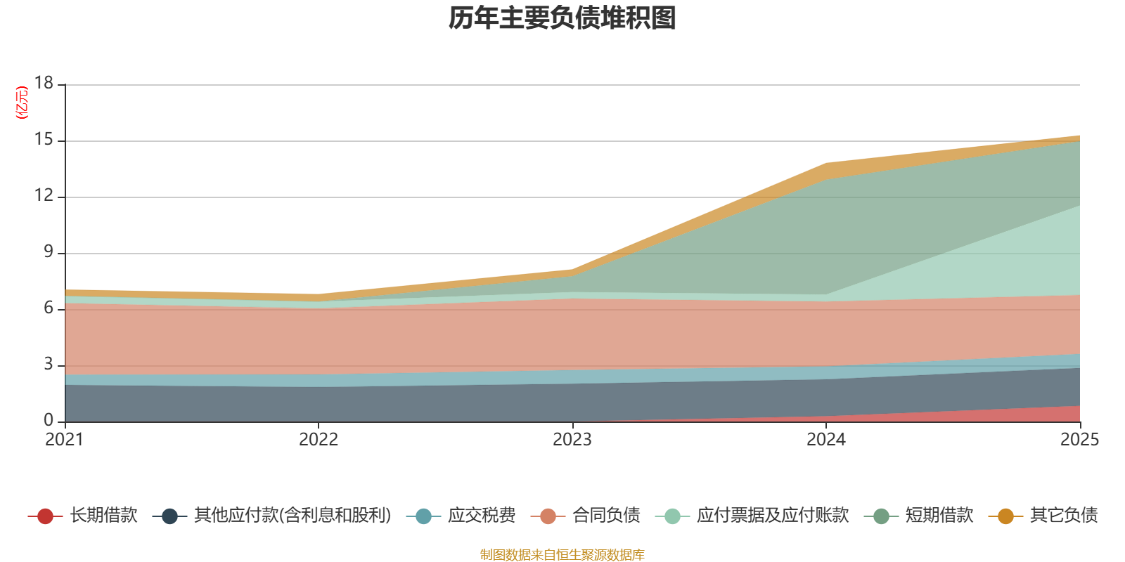 负债重大变化方面,截至2025年末,公司短期借款较上期末减少44.05%,占公司总资产比重下降9.55个百分点;应付票据及应付账款较上期末增加1164.4%,占公司总资产比重上升7.31个百分点;合同负债较上期末减少9.11%,占公司总资产比重下降3.3个百分点;其他应付款(含利息和股利)较上期末增加3.18%,占公司总资产比重下降1.46个百分点。