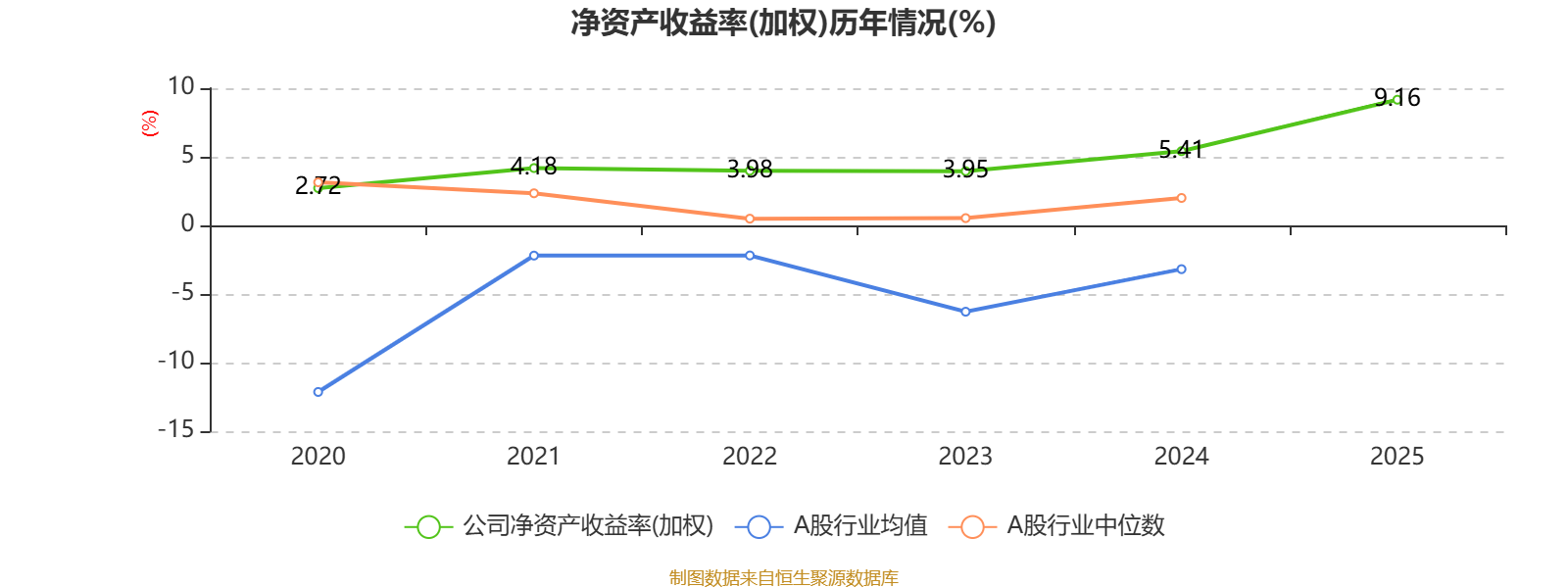 数据显示,2025年公司平均净资产收益率为9.16%,较上年同期上升3.75个百分点。