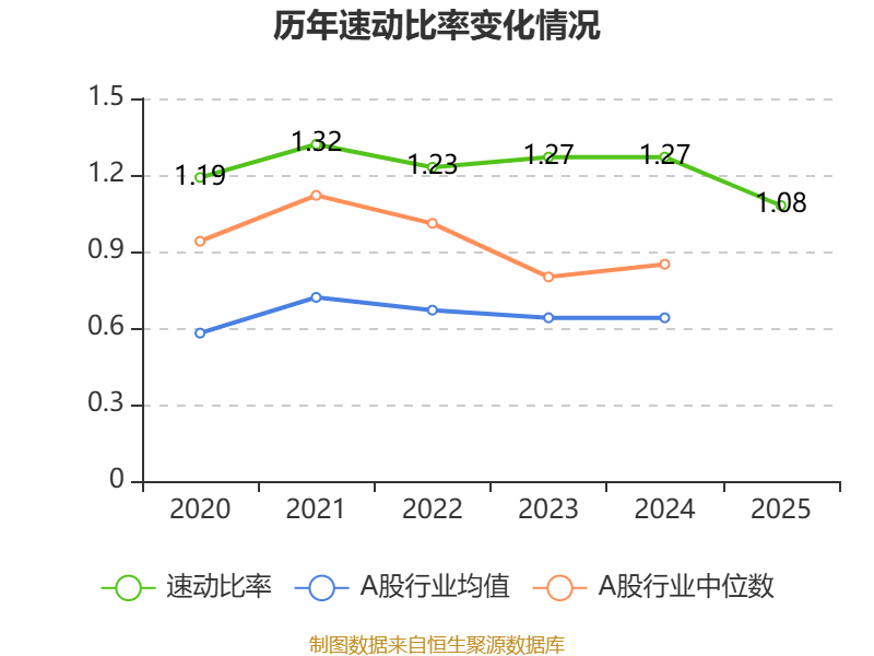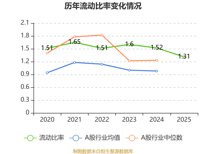 2025年,公司流动比率为1.31,速动比率为1.08。