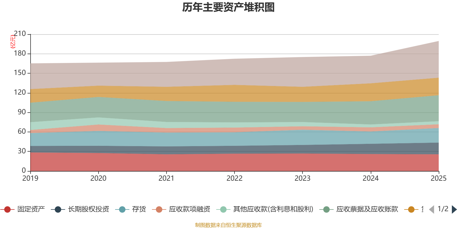 资产重大变化方面,截至2025年末,公司货币资金较上期末减少2.19%,占公司总资产比重下降2.06个百分点;固定资产较上期末减少1.46%,占公司总资产比重下降1.86个百分点;其他权益工具投资较上期末增加131.72%,占公司总资产比重上升0.98个百分点;交易性金融资产较上期末减少15.72%,占公司总资产比重下降0.82个百分点。