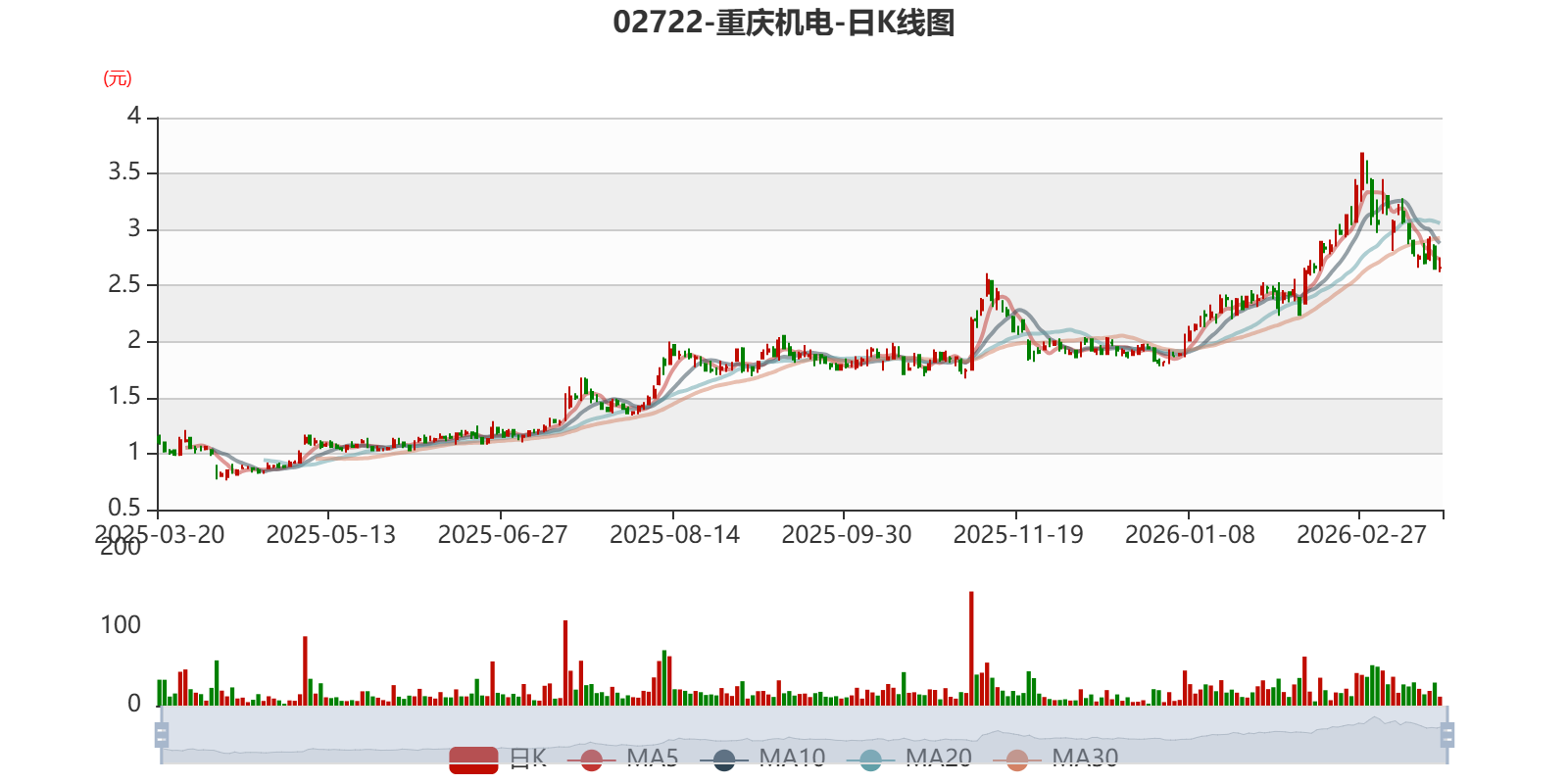 中证智能财讯重庆机电(02722)3月20日披露2025年度报告。报告期内,公司实现营业收入99.83亿元,同比增长11.86%;归母净利润7.64亿元,同比增长76.9%;经营活动产生的现金流量净额为4.59亿元,同比下降35.98%;据报告显示,重庆机电基本每股收益为0.21元,平均净资产收益率为9.16%。公司2025年分配预案为:每股派息0.055元。