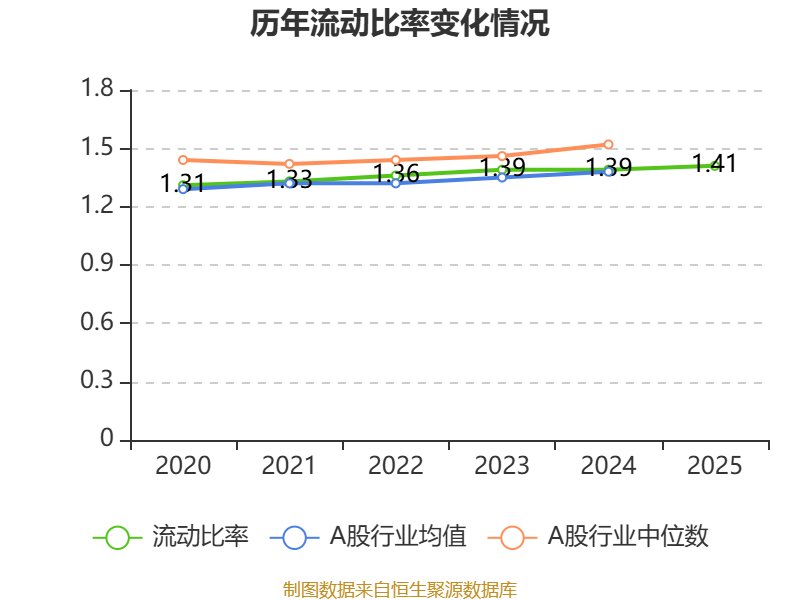 2025年,公司流动比率为1.41,速动比率为1.15。