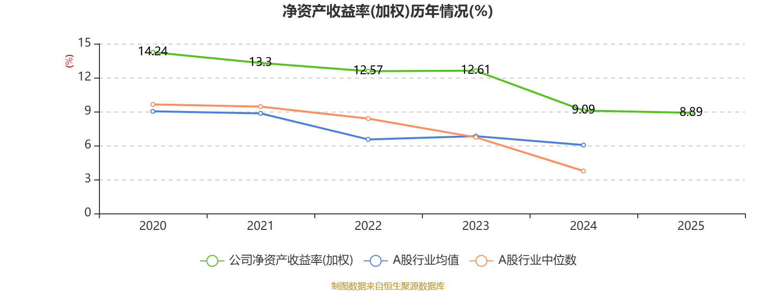 数据显示,2025年公司平均净资产收益率为8.89%,较上年同期下降0.2个百分点。