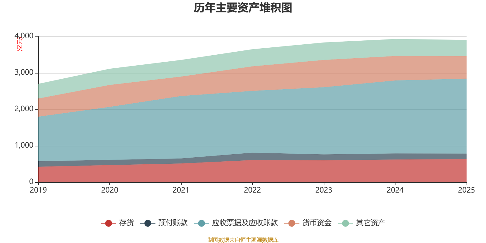 资产重大变化方面,截至2025年末,公司应收票据及应收账款较上期末增加2.68%,占公司总资产比重上升1.7个百分点;货币资金较上期末减少8.21%,占公司总资产比重下降1.3个百分点;存货较上期末增加1.59%,占公司总资产比重上升0.35个百分点;预付账款较上期末减少7.9%,占公司总资产比重下降0.31个百分点。