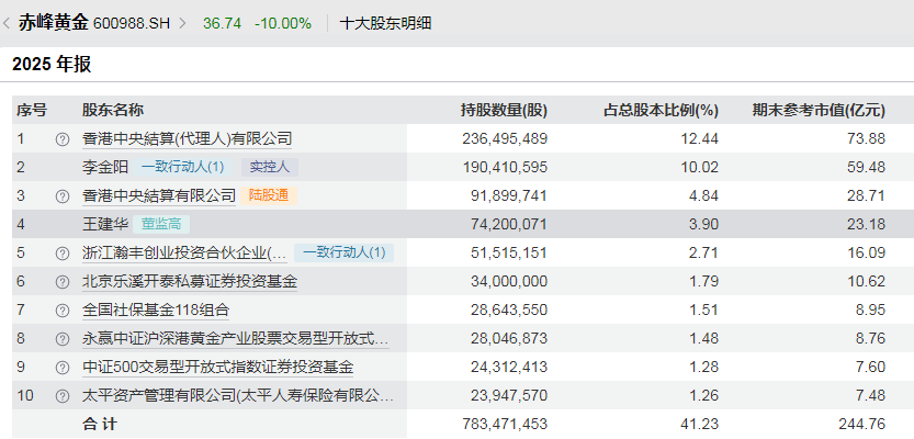 截至目前,王建华任赤峰黄金董事长、执行董事和法人,并且持有赤峰黄金3.9%股份,为仅次于李金阳的重要自然人股东。
