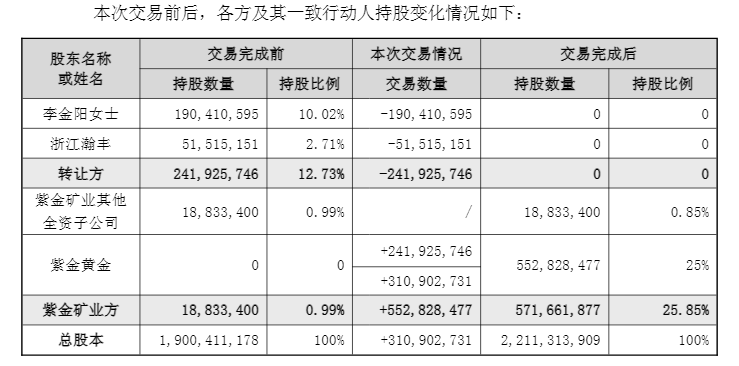 相应的,赤峰黄金控股股东将由李金阳变更为紫金黄金,实控人则由李金阳变更为上杭县财政局。