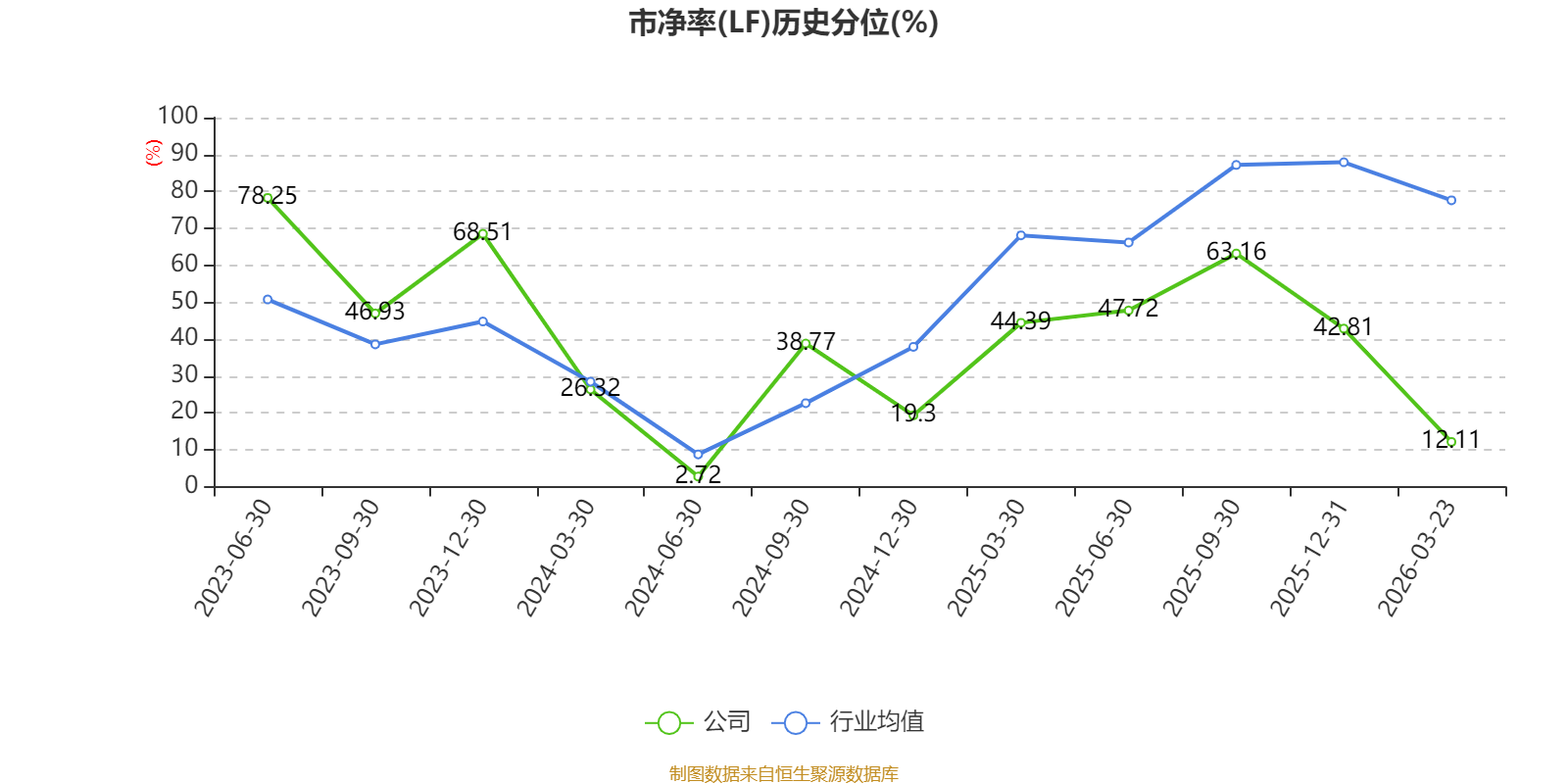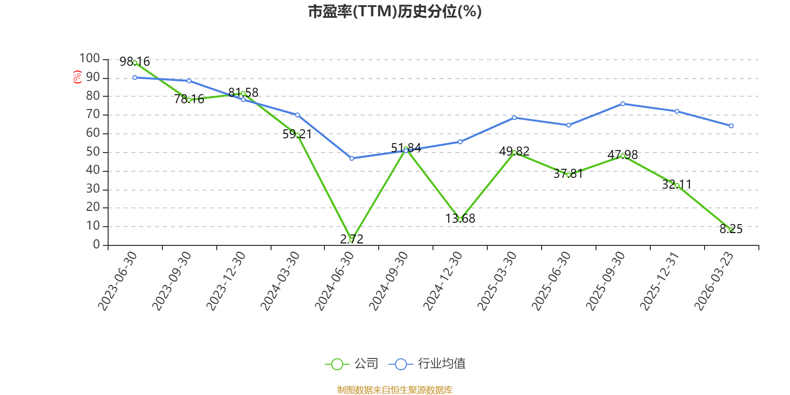 市盈率、市净率为负时,不显示当期分位数,会导致折线图中断。