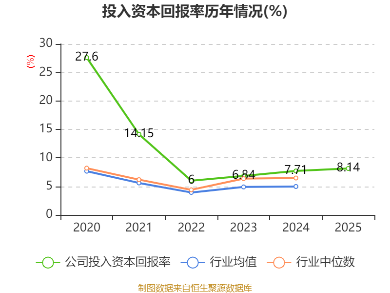 数据显示,2025年公司加权平均净资产收益率为9.25%,较上年同期上升0.35个百分点。公司2025年投入资本回报率为8.14%,较上年同期上升0.43个百分点。