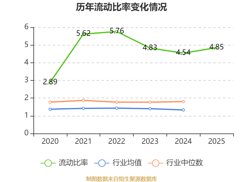 2025年,公司流动比率为4.85,速动比率为4.25。