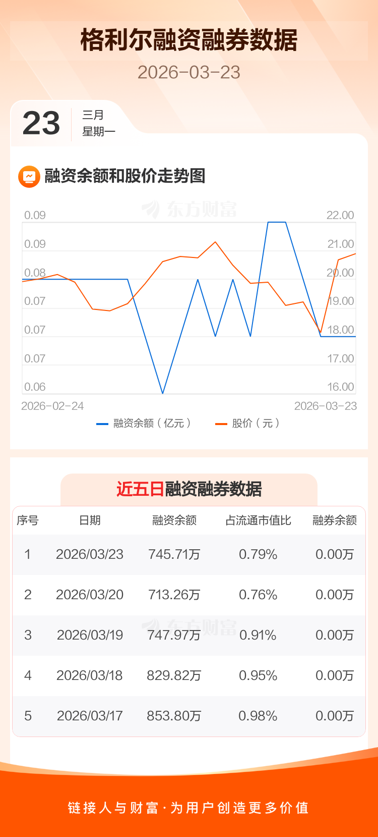 交易所最新数据显示,格利尔于2026年3月23日获融资买入368.67万元,融资偿还336.22万元,当日融资净买入32.45万元。目前,该股融资余额745.71万,占流通市值比例为0.79%。