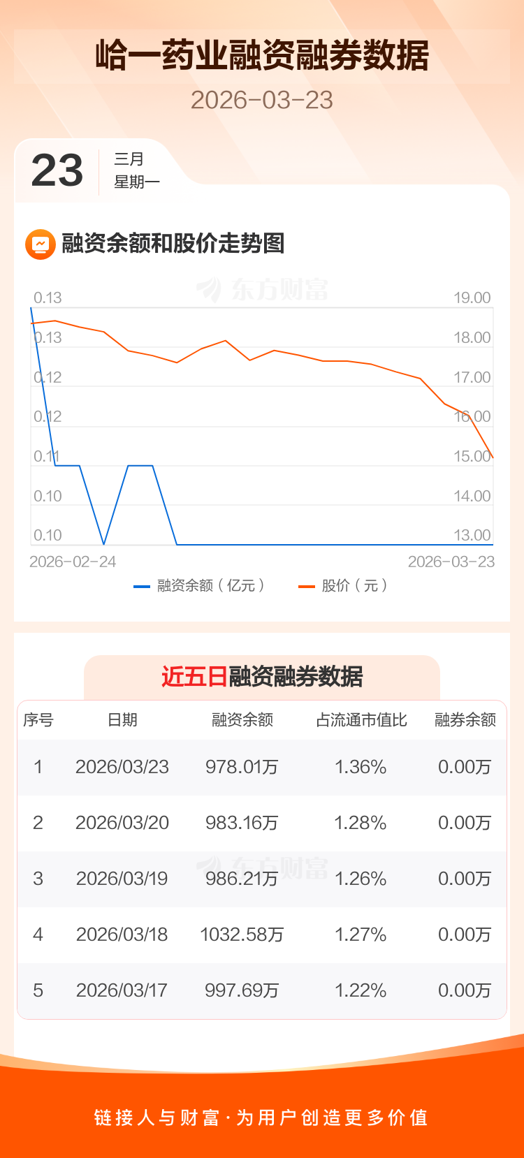 交易所最新数据显示,峆一药业于2026年3月23日获融资买入89.19万元,融资偿还94.34万元,当日融资净偿还5.15万元。目前,该股融资余额978.01万,占流通市值比例为1.36%。