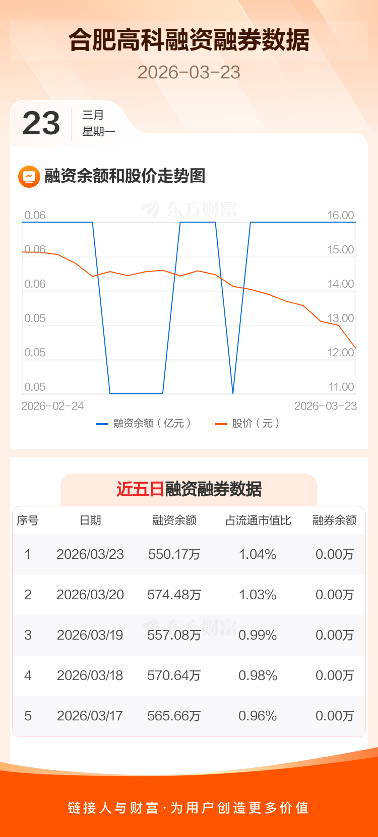 交易所最新数据显示,合肥高科于2026年3月23日获融资买入18.12万元,融资偿还42.42万元,当日融资净偿还24.3万元。目前,该股融资余额550.17万,占流通市值比例为1.04%。