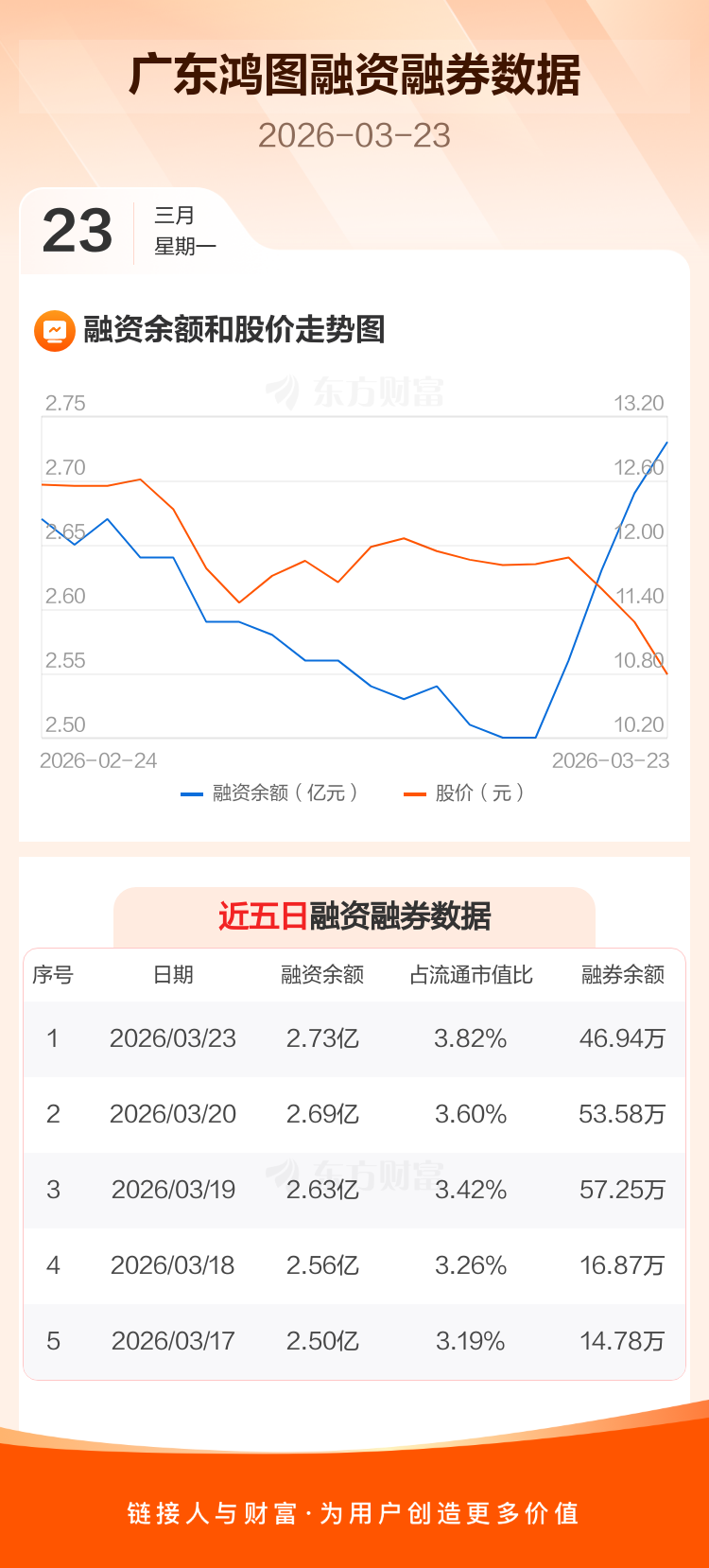交易所最新数据显示,广东鸿图于2026年3月23日获融资买入1029.59万元,融资偿还653.05万元,当日融资净买入376.54万元。目前,该股融资余额2.73亿,占流通市值比例为3.82%。