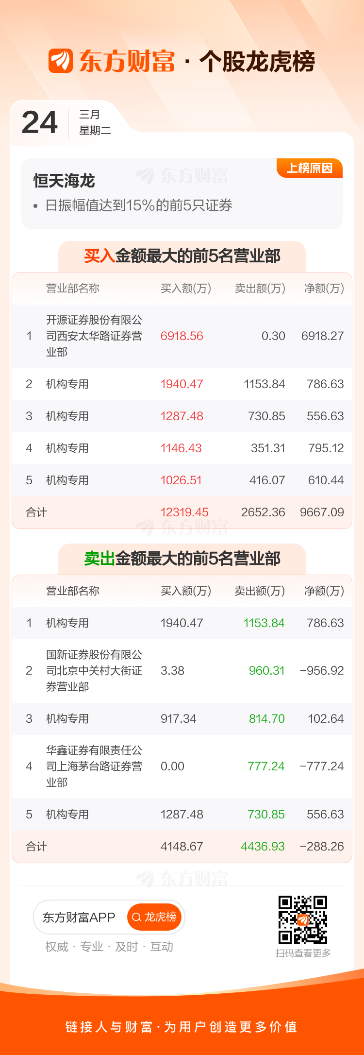 恒天海龙(000677)龙虎榜数据(03-24)