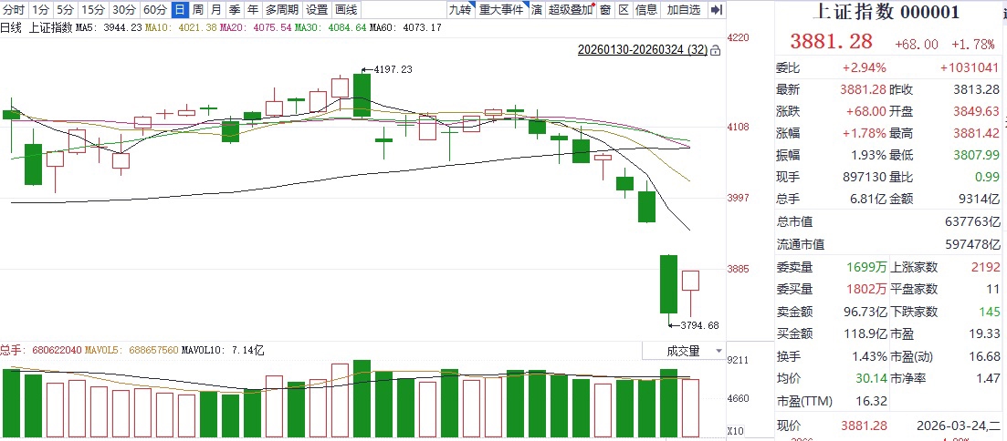 国际油价快速走低,隔夜美股反弹,叠加A股自身超跌反弹需求,3月24日三大股指出现不同程度上涨。