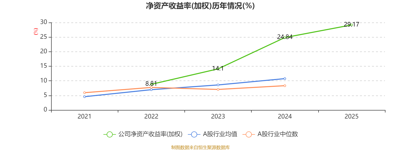 数据显示,2025年公司平均净资产收益率为29.17%,较上年同期上升4.33个百分点。