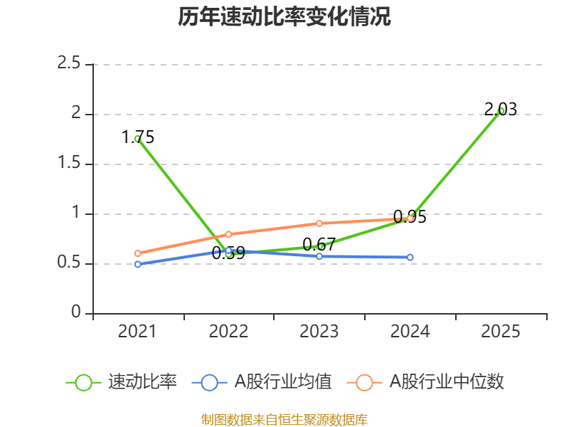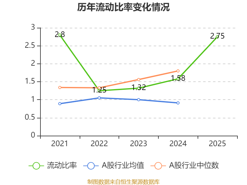 2025年,公司流动比率为2.75,速动比率为2.03。