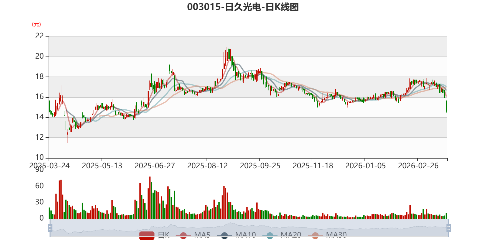 中证智能财讯日久光电(003015)3月24日披露2025年年度报告。2025年,公司实现营业总收入6.67亿元,同比增长14.46%;归母净利润1.05亿元,同比增长54.94%;扣非净利润9916.19万元,同比增长64.13%;经营活动产生的现金流量净额为1.85亿元,同比增长35.40%;报告期内,日久光电基本每股收益为0.38元,加权平均净资产收益率为9.92%。公司2025年度分配预案为:拟向全体股东每10股派现2元(含税)。