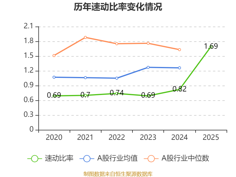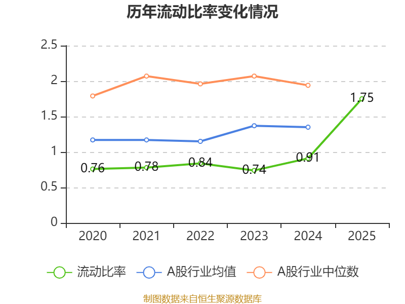 2025年,公司流动比率为1.75,速动比率为1.69。