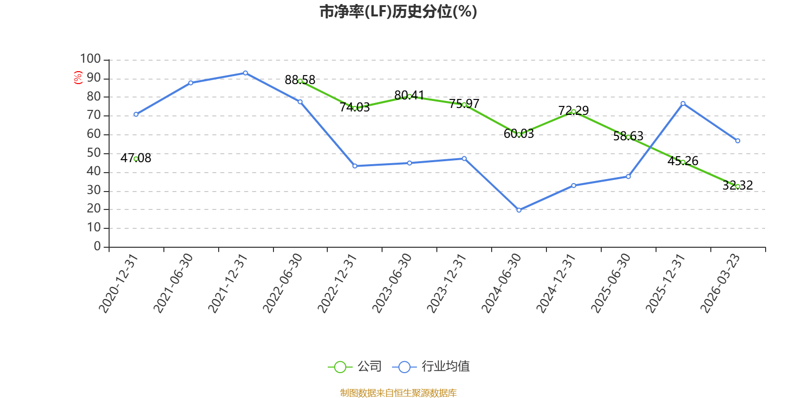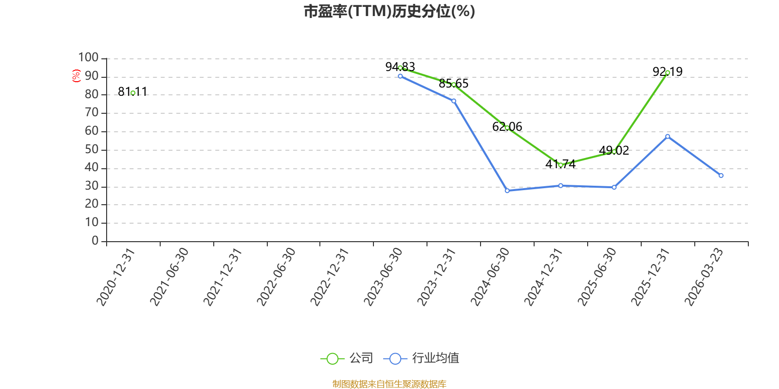 市盈率、市净率为负时,不显示当期分位数,会导致折线图中断。
