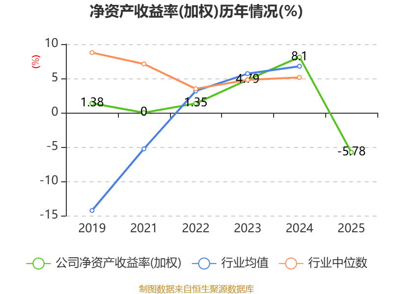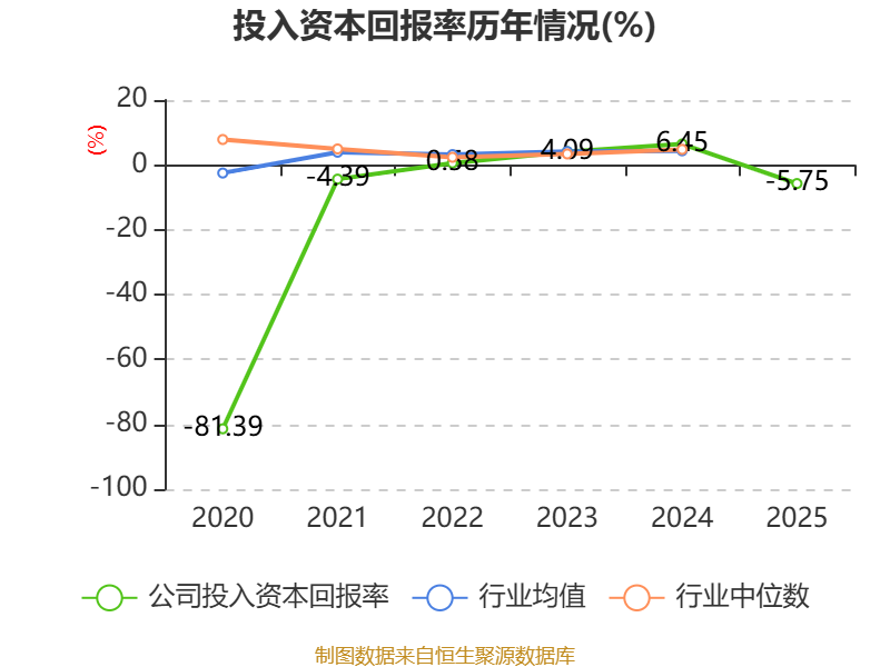 数据显示,2025年公司加权平均净资产收益率为-5.78%,较上年同期下降13.88个百分点。公司2025年投入资本回报率为-5.75%,较上年同期下降12.2个百分点。