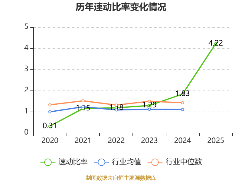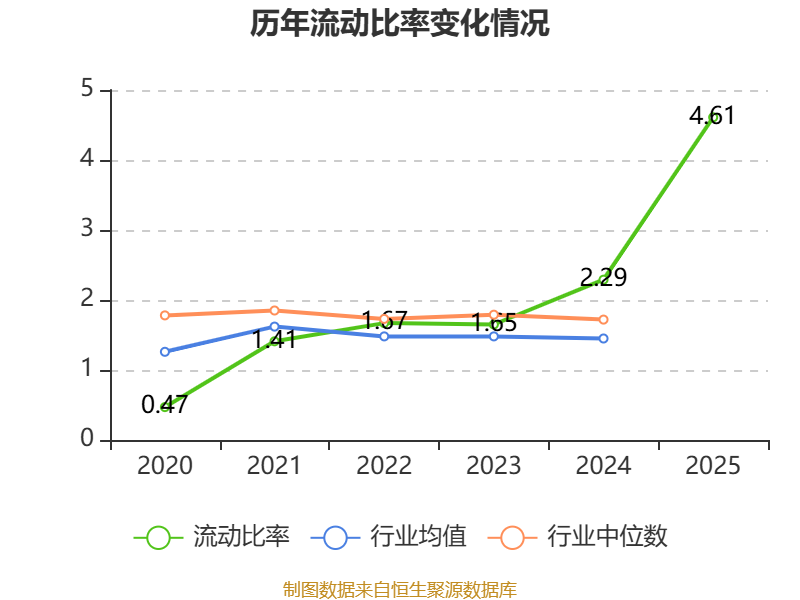 2025年,公司流动比率为4.61,速动比率为4.22。