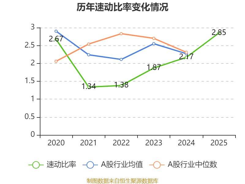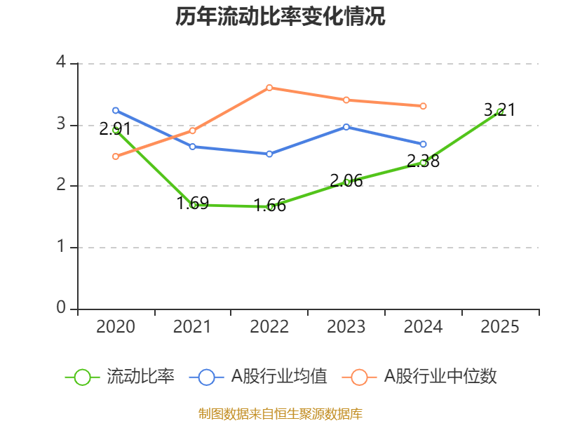 2025年,公司流动比率为3.21,速动比率为2.85。